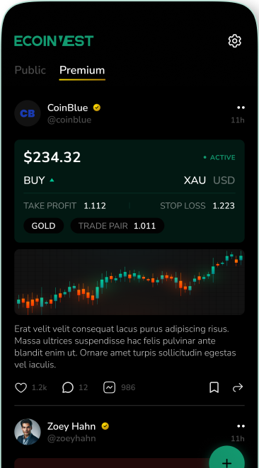 Enhance your trading decisions with Ecoinvest’s user profile feature, where you can access detailed analyses, calls, and predictions from international and SEBI-registered expert traders. Stay informed with insights covering all market types, empowering you to trade confidently. Download the Ecoinvest app today from the App Store or Google Play and elevate your trading experience.Remaining features will be added soon